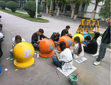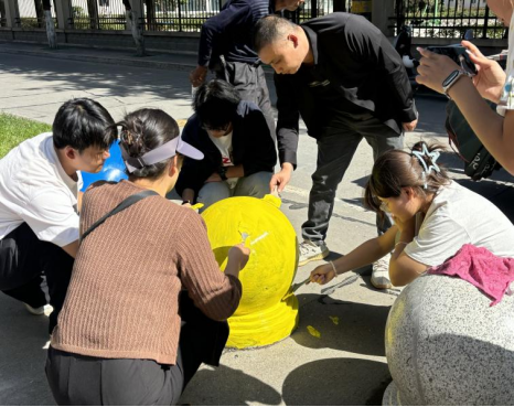活动现场,同学们分工协作,有的负责调配颜料,有的精心勾勒图案,有的细致填充色彩。原本单调的石墩,开展了一场别开生面的彩绘活动,用创意画笔为校园周边环境注入文明活力。
