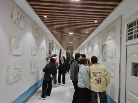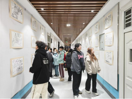 活动前期,学院组建专项工作组,精选经典场景作为临摹范本,专业教师团队分组指导学生兼顾形似与神似,在笔墨线条中融入情感表达。活动共征集180余件作品,经专业评审遴选出103件优秀作品,于学院三楼走廊以“原作+临摹+手稿+解说”的立体展陈形式呈现,兼具叙事性与感染力。