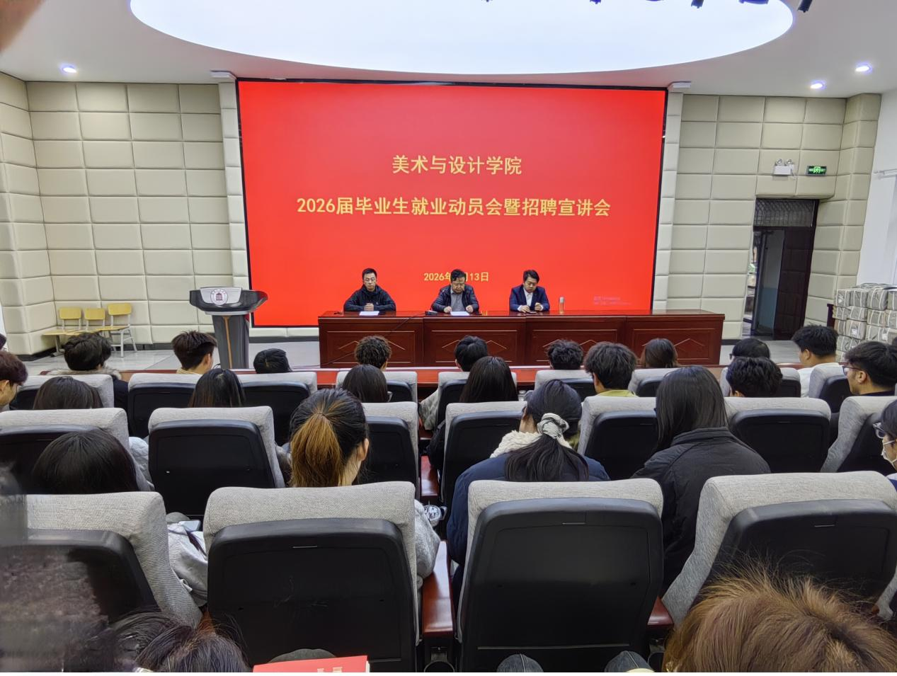 3月12日上午美术与设计学院在育心楼119报告厅召开2026届毕业生就业动员大会暨招聘宣讲会。解读就业政策、分析就业形势、指明求职路径,重点推介新疆就业市场,同步开展招聘宣讲,为毕业生就业护航。